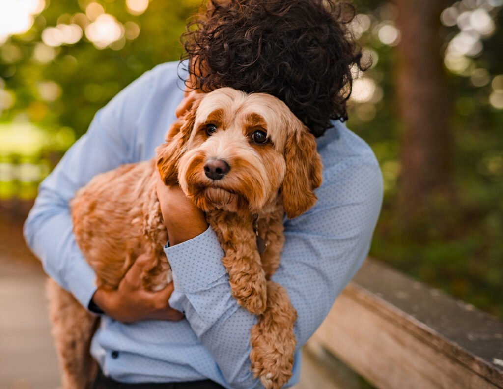 One of the reasons I love Idylwood Park in Redmond, WA is for its variety in backdrops (learn more about my favorite parks in the Redmond area here). On the way to the beachside of the park is a little foot bridge. We pause here for a few sweet moments with family members, including his adorable puppy: